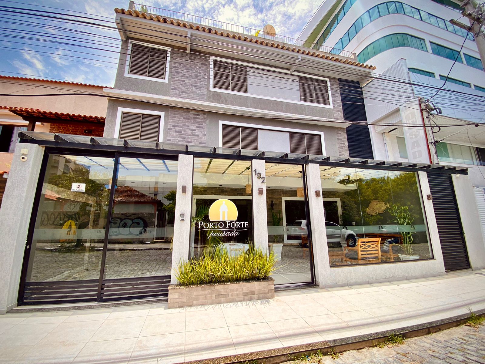 A Pousada Porto Forte fica bem no centro comercial de Cabo Frio, próximo a bancos, lojas, farmácias, mercados, bares e vida noturna da Cidade, a 5 min do Boulevard Canal, onde saem passeios de barco e tem uma variedade de restaurantes. Fica a 450m da mais bela e conhecida Praia do Forte, e a 10 min de carro das Praias do Peró, Conchas e da famosa Ilha do Japonês.