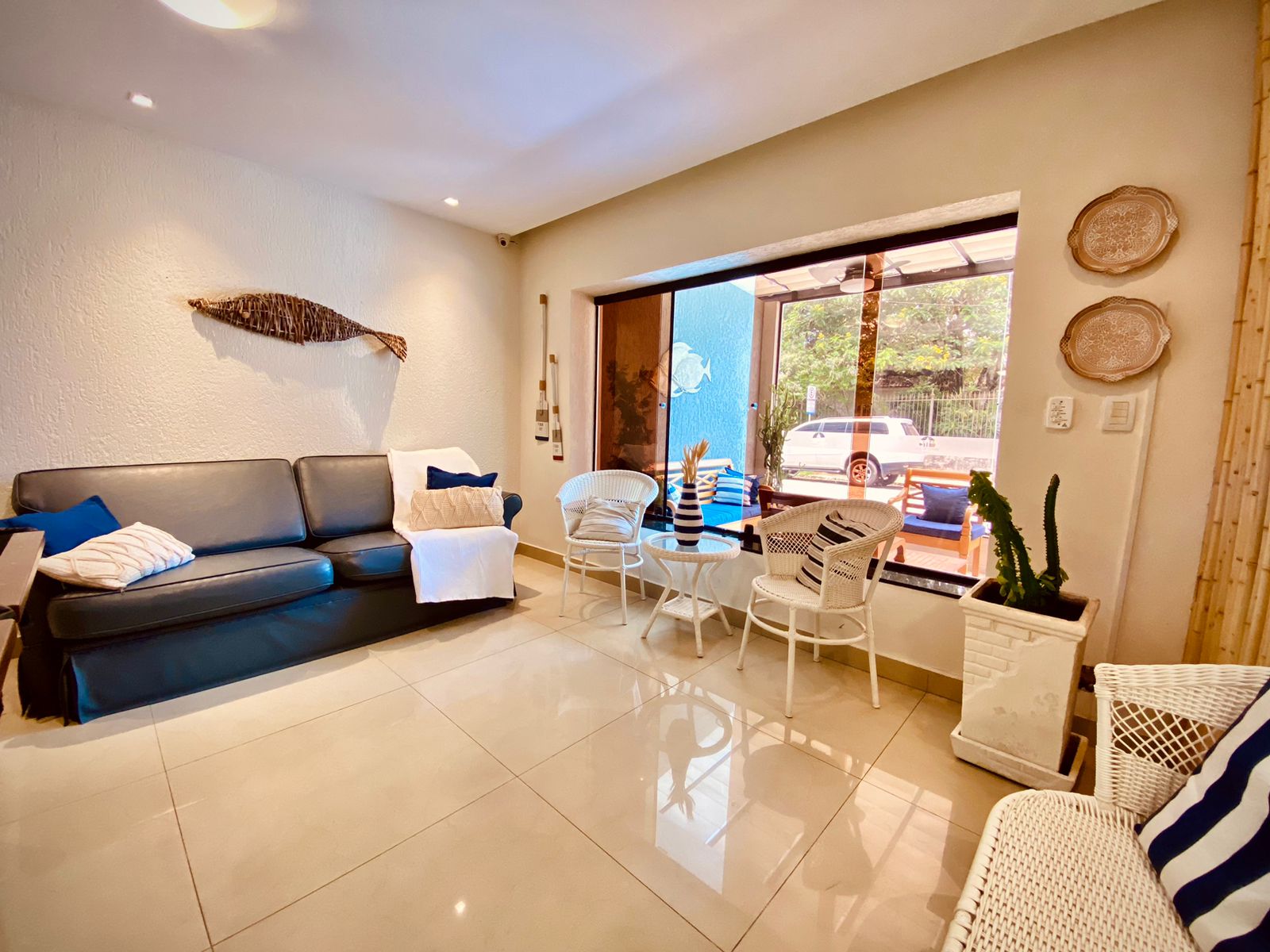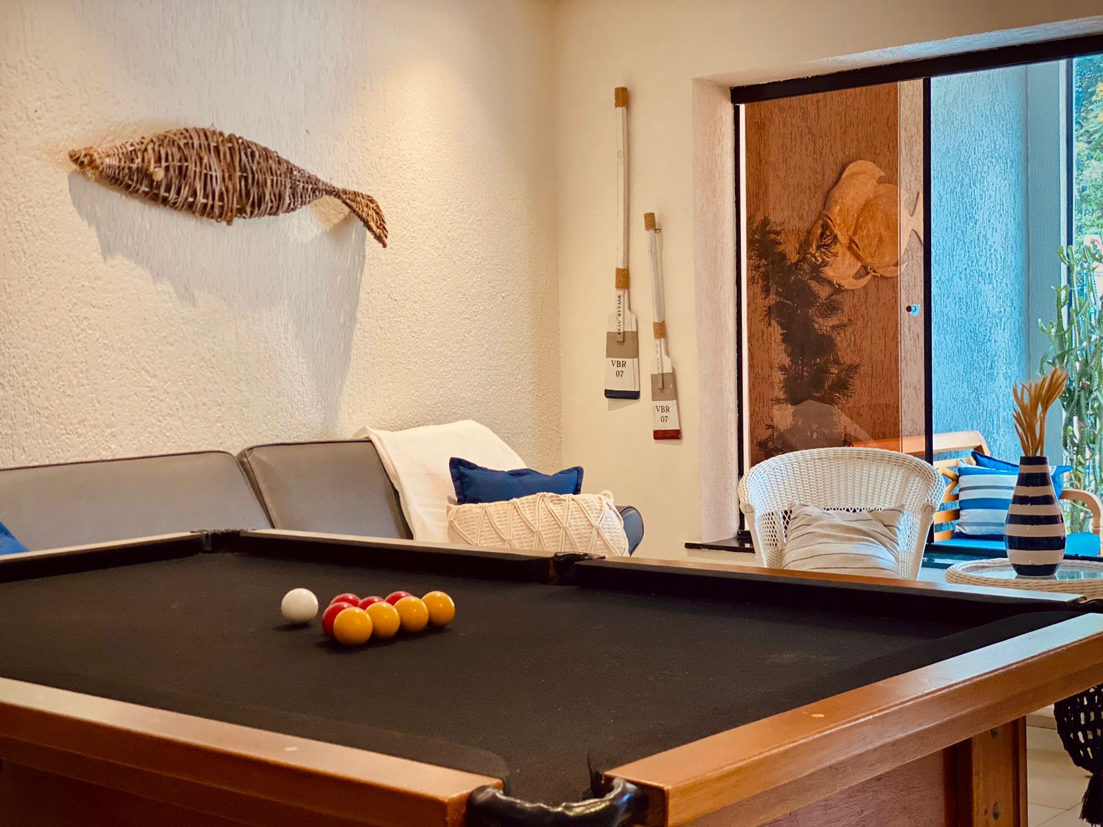 Temos duas salas de recepção com tv e ventilador, uma sinuca e alguns jogos para diversão da família. E após um dia na praia, relaxe no terraço e aprecie o pôr do sol e a vista panorâmica da cidade.
